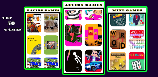 like ACTION, MIND,RACING, Sports, Adventure, Arcade games, etc.