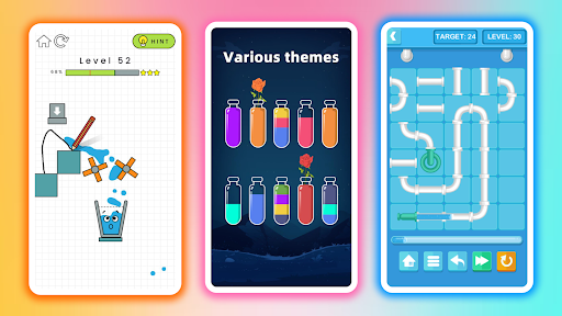 It merges the best and free puzzle games, like Draw Lines, Block Box, One Line, Quick Shoot and other free puzzle games, provides you the best experience for all in one popular puzzle games collection, easy but funny and full of challenge.