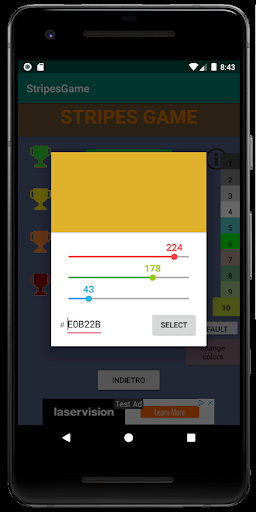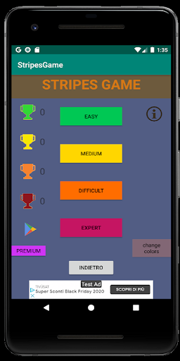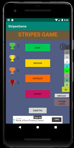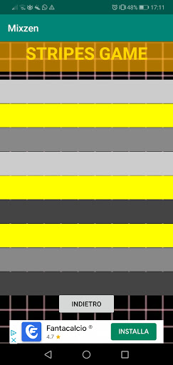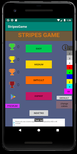 You have to make disappear all the stripes. If you press on multiple color stripes the stripes of the same color will disappear, while if you press on single color stripes the stripe will disappear or change color (is random). If you press wrong on the background all the stripes regenerate and every few seconds the stripes regenerate (the time interval depends on the difficulty level).