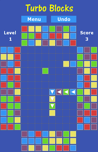 Simple puzzle for everyone. Drop from one to three blocks into the board to group them by colour. Groups of three or more blocks (not necessarily in one line - L-shaped groups are counted too) of the same colour are removed from the field. Game objective - remove all blocks from the central field.
