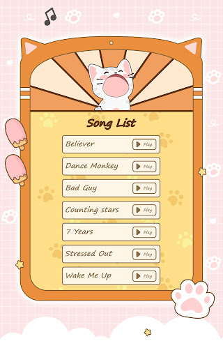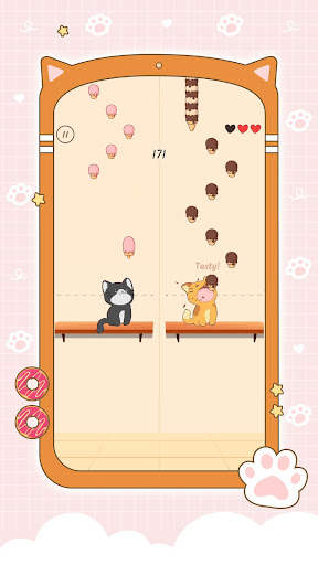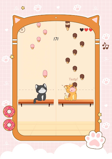 Tap the screen to hit the notes (ice-cream, candy, donut, sushi) and the cute cats will sing along to the music.