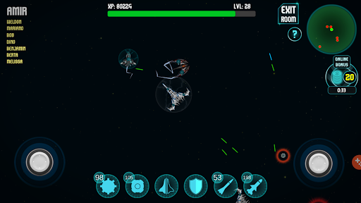 You can lay mines for other spaceships to hit, use a cloak and fire missiles at other space craft in an IO online free for all battle.
