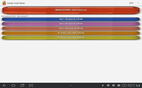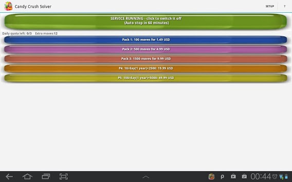 Very easy to use, all you need to do is activate Candy Game Solver before you enter the real game Candy Crush, and then take a screenshot once you are inside the game and wish to receive an advice. Candy Game Solver will analyze the screenshot just taken and show you what could be your next move.