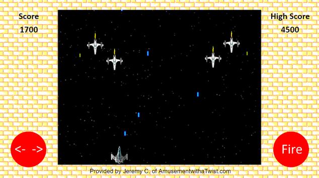 The object of space ace is to destroy as many enemy space ships you possibly can without making a mistake and ether getting shot by an enemy laser or being destroyed be crashing into an enemy ship.