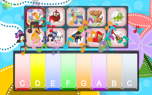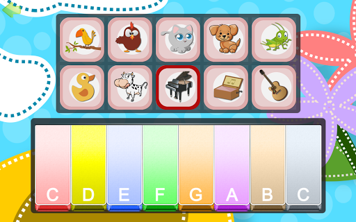 🎵 Music game: Piano animal sounds is a virtual piano with animal sounds: 🐶 dog sound, 🐱 cat sound, 🐦bird sound, 🐄 cow sound, 🐞 cricket sound, 🐔 chicken sound, 🐣 duck sound, 🎼 music box sound, 🎸 guitar sound and 🎹 piano sound.