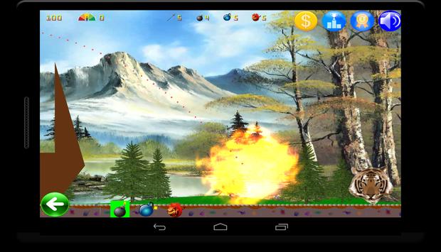 In the game, you will use javelins to hunt wild animals - tiger, leopard, elephant ... which are all lovely and animating. Starting as a newbie, you have to overcome all the difficulties and challenges before you become a javelin master. With glass board, wood plank, seesaw and balls, it is even more challenge and fun. Too difficult to pass a level? Well, a powerful bomb to get the job done. Be sure to check the help in the game for details about how to play.