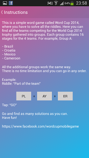 Here it is, the one and only, the fun and challenging word puzzler for 2014's biggest football event in Brazil, World Cup 2014. WORD CUP 2014!