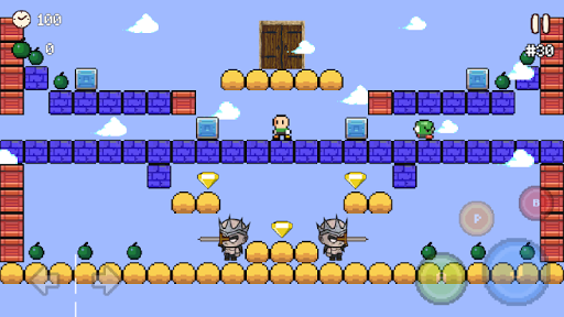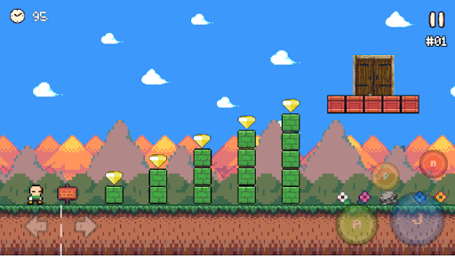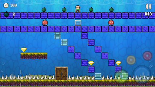 Each stage is a single screen with a variety of platforms, enemies, and obstacles. The protagonist One Punch Boy has limited jumping abilities, but may also smash certain blocks and enemies using a punch, or drop bombs found in certain stages to destroy blocks below him.