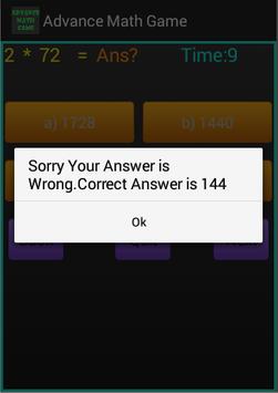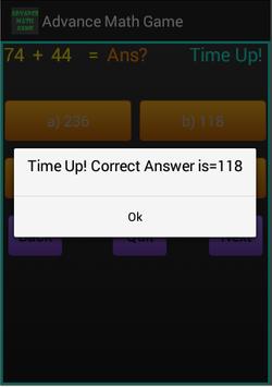This Application is basically to check mathematical calculation of numbers. In this application there mathematical expression given then user has to calculate result of mathematical expression click on any one option out of four options if result is correct then message comes with congratulations and for wrong result message comes with correct result. Also there is reverse countdown. If user fail to calculate result within this specified time then after that message comes with Actual answer.