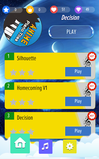 This game is a game of Piano Tiles, or sometimes it is also called Piano Dream. Because it contains anime songs, the name is become Anime Piano Tiles. The songs in this game are Silhouette, Decision, Despair, etc.