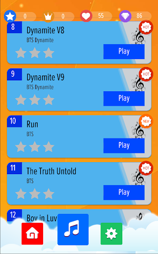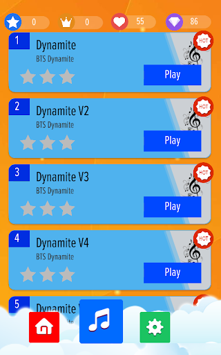 We have packed the song into a piano game that we play ourselves, and we turn it into a piano tone according to the tone on the song Dynamite belongs to one of KPOP Idol. We have created 9 versions of the song that you can play in this game.