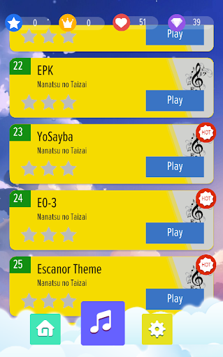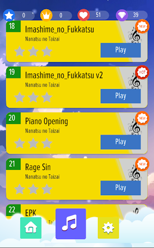 This Nanatsu no Taizai Piano Tiles piano game is made by fans. This game does not contain any copyright to the game content in any form. The tones used in this piano game play are made by ourselves. If you submit a copyright claim, please contact us via our email.