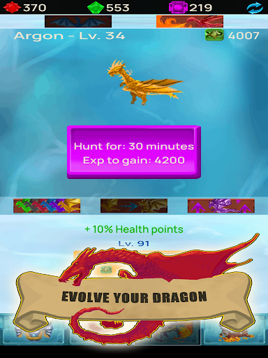 → Send your dragon on a hunt to improve its abilities and reach the next evolution level
