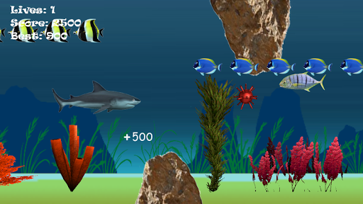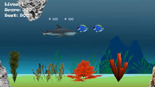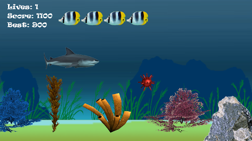 ** Three lives – swim carefully and don't let the angry shark hit the top or the bottom of the screen, as well as different obstacles and bombs!