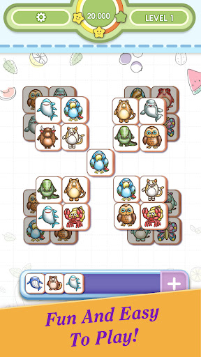 Animal jigsaw puzzles are a little different from the classic jigsaw puzzles. You will have to arrange the tiles in groups of 3 identical tiles, and it has very little free space so the game will not be easy. So how will you play the Animal Match game? The game starts with a board full of tiles with animals on them. Some cells have the same animals. At the top of the screen is a space that can hold up to seven cells. Each time you tap a tile, it moves to an empty tile at the top of the screen. Whenever you match a group of three identical tiles in that area, they disappear, leaving room for more tiles.