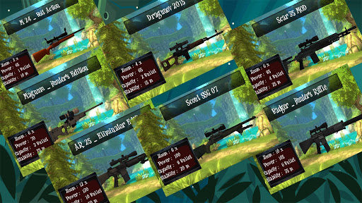 - 30+ levels of beautiful jungle , with different animals to hunt for.