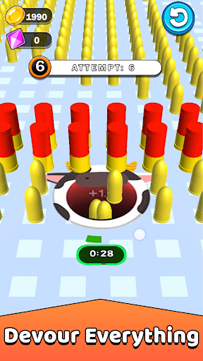 The further you go to the back of the level, the higher the difficulty, and the more the number and types of weapons that can be swallowed. If you can't swallow it, you can spend free coins to upgrade your black hole before the game starts.