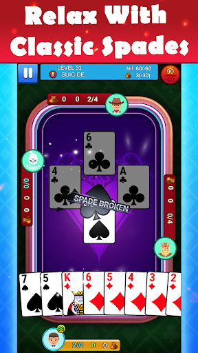 ♠ Play Solo Spades or in Partner mode in this 4 players card game