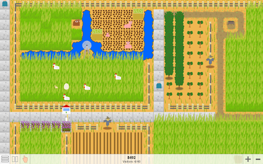 In My Land, you may take up several avenues of revenue generation. You can do farming, business, or run a nature trail system. The farm is where the easiest money is to be made. There are no real rules to the simulation, so you can basically do anything you want to. Feel free to explore all that the game has to offer!