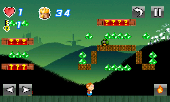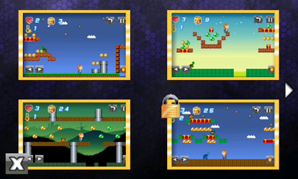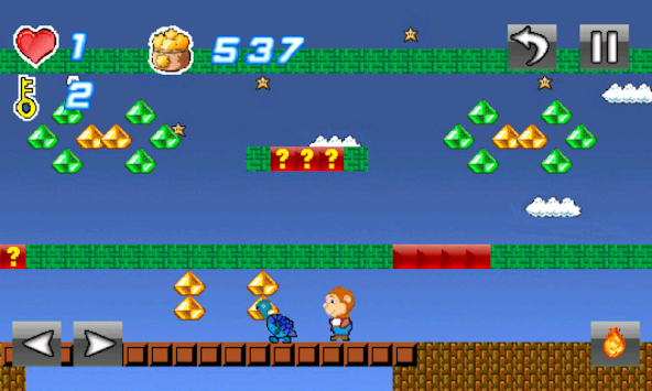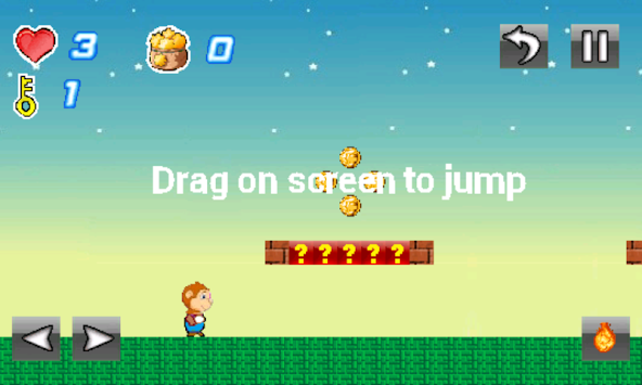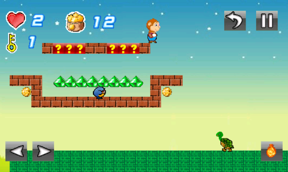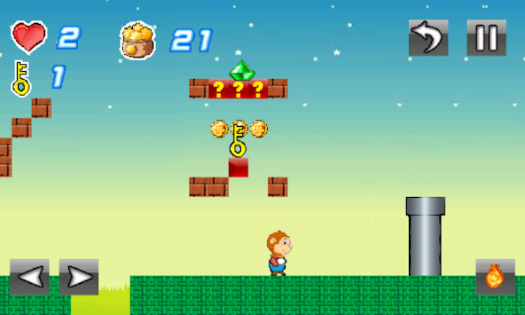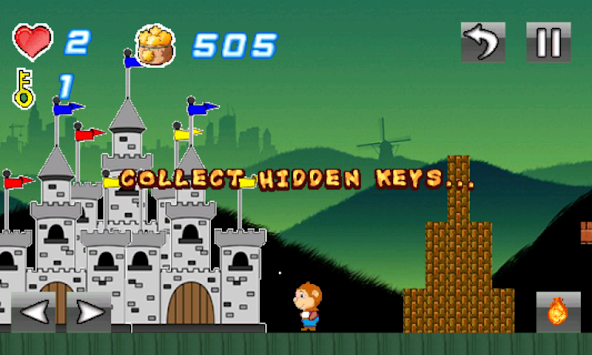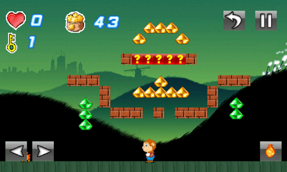 Super world is exciting game. In This game the hero hunter has to reach the castles where his princess is hidden. To Enter the castle he has to find the "KEY" hidden in question mark and other type of tiles. In this journey he will come across different enemies and also gifted with different power ups which help to kill the enemies. He want to come across all these hurdles and reach his love princess.
