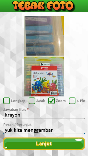 Kami menawarkan game tebak foto/gambar yang berbeda dengan yang lain. Game kami memungkinkan untuk kalian membuat kuis sendiri dan kirim ke teman teman untuk menebaknya. Jadi tunggu apa lagi, keluarkan hp kalian, foto-foto lalu kirim kuis, ke teman
