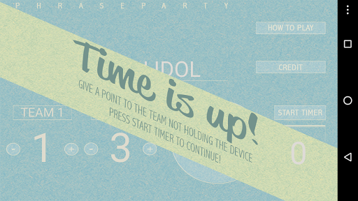 You'll need to be a fast thinker when playing Phrase Party. The game is played by guessing the word or phrase displayed on the device's screen based on clues given by your teammates. After guessing correctly, you have to pass the game to the next team before the timer runs out to avoid being the ones holding the device when time’s up. First team to get seven points wins!