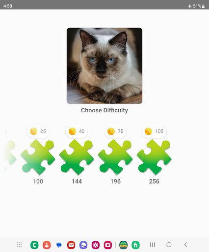 Jigsaw Galaxy: Cats Edition is the perfect jigsaw puzzle game for adults who like to challenge themselves. With the ability to choose the difficulty of the puzzle by selecting the number of pieces, you can choose the right fit for your skill level. From photo puzzles to art pictures, our game offers different categories to select from. So, grab your device and dive into the world of Jigsaw Galaxy: Cats Edition!