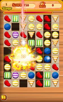 ● Arrange 4 same candies, which break automatically 1 obstacle by accident and a thump candy appears to destroy all candies in the same line.