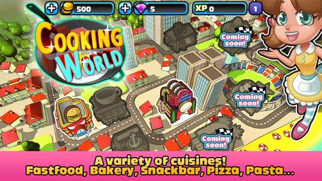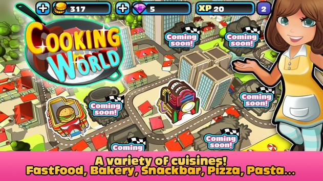 Cooking World takes you to a thrilling and mouthwatering adventure of restaurant management, dish preparation and amazing food recipes! With a choice of 7 different restaurant locations, delight your customers by cooking and serving wonderful dishes, from burgers and fries to coffee and cakes and even seafood! Upgrade and decorate your restaurant and become the best restaurateur in the world!