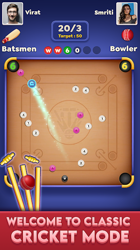 Play Cricket in Carrom - New Carrom 3D board game - disc pool game.