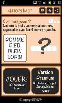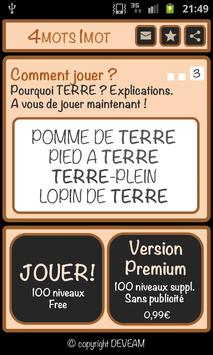 L'application est gratuite et affiche de la publicité. Vous pouvez acheter la version Premium de 4 mots 1 mot pour seulement 0,99 €, elle vous permettra de jouer à 100 niveaux supplémentaire et supprimera la publicité.