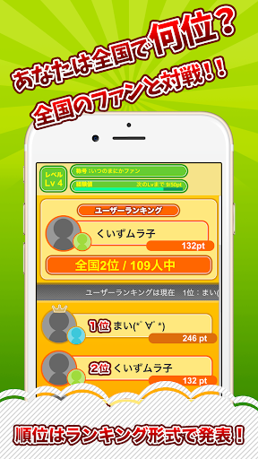 あなたは全国何位?クイズで獲得したポイントはユーザーランキングに反映されます。全国のファンとクイズ対決!