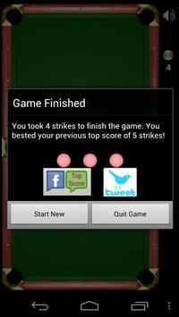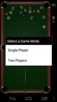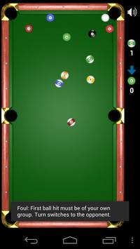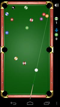 Play a round of 8-ball pool with realistic physics simulation. Large screen area. Touch to aim and shoot the white ball. The strength of the shot is proportional to how far you are touching behind the white ball.
