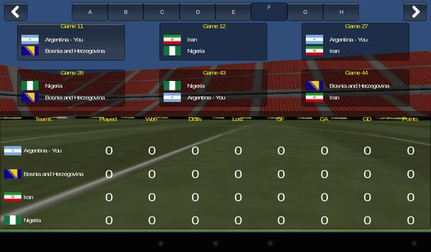 This is a complete and true test of your skills across all formats. It is in actual format of a 32 side Soccer World Cup. You have to choose one of the teams as you and then compete with other 31 teams in the tournament to win the prestigious Cup. Initially you will have to play a round robin matches to enter the Knock out phase. Once you finish in the top 2 of the League phase you enter the knockout phase of the tournament. In total you can play from 3 to 7 match in a world cup involving 63 matches.