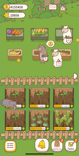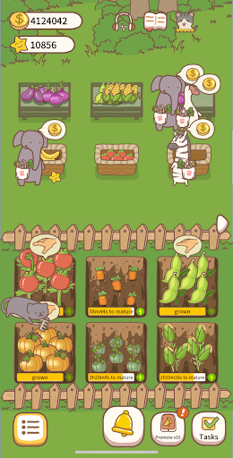 Growing vegetables in vegetable fields, Take care of vegetable growth patiently, Waiting for the vegetables to mature and harvest, Picking vegetables and selling to animals.