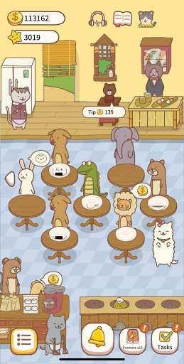 In this game, there are many facilities available, diy your restaurant to your liking. Advanced facilities may bring you more evaluations and coins. Get more coin through Dessert Bar. Ger more star through beautiful curtains, wall decor. Plant makes your restaurant elegant, increase animals satisfaction of dining. There are also many interesting facilities in the restaurant, waiting for you to unlock.