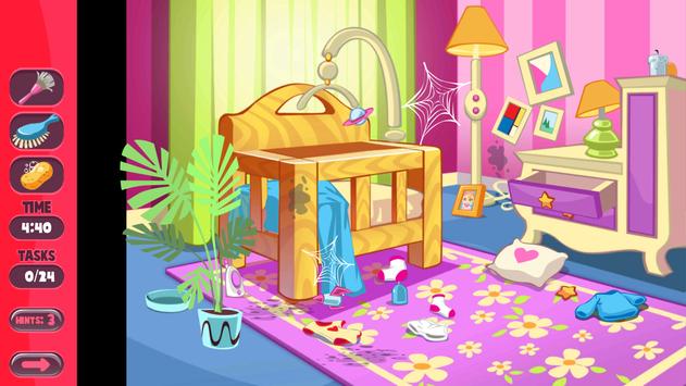 Show everyone you're the best at time management house cleaning games for girls by cleaning messy rooms one by one in this educational game.