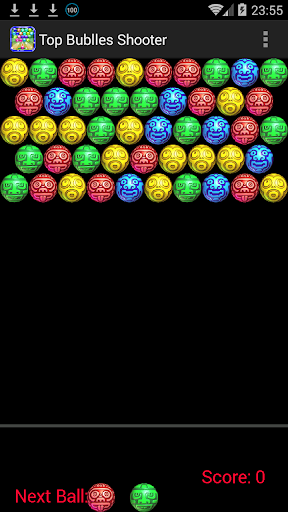 In order to win you have to shoot a ball at two balls or more of the same color, try to play smart to make balls unatached fall, beware of the rows that are being added after a number of shots depending on the difficulty. You can see the next ball on the left and the score on the right, every fallen ball adds 5 points to your score, and if a ball sticks you lose 5 points.