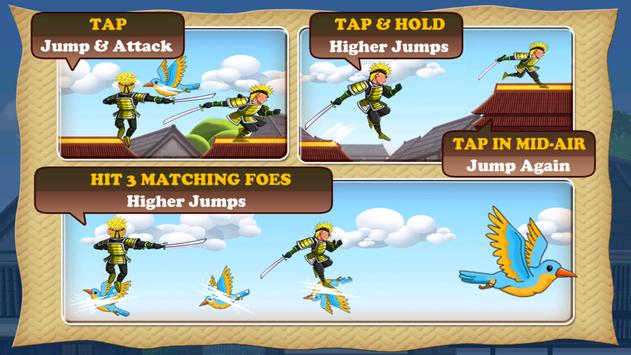 to sequel levels and sequences with the fast touchscreen jumps ,and make a higher jumps to dodge and fight the bad birds and The wicked ninjas