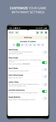 Do you like Wordle? Now this simple and fun word game is in your pocket. Come back every day for a new challenge, or play your own puzzles as many times as you like.
