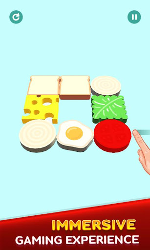 In this deliciously puzzle game,your goal is to make delicious sandwich combining bread with the cheese, onion, tomato and other many ingredients toppings. As you complete perfectly different delicious sandwich puzzles more sandwich ingredients and levels unlocked and become more harder.