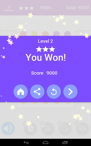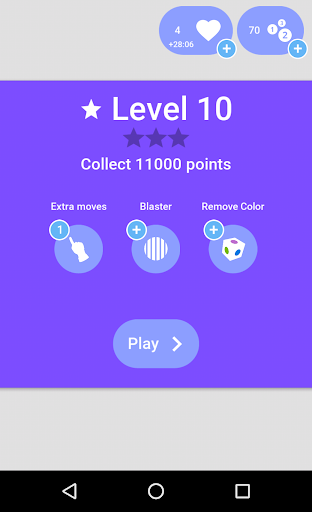 - Play three different level types: achieve a certain score, clear all gray squares or catch the diamond