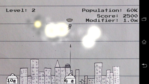 Defend your paper city and its population from falling meteors! Use missiles to destroy them before they hit the city! Increase your score and use it to unlock upgrades for your missile stations.