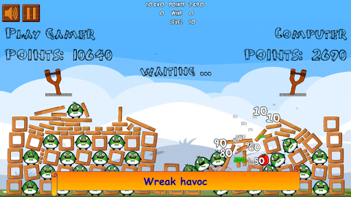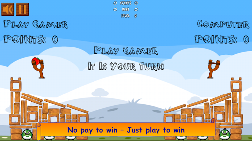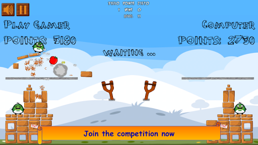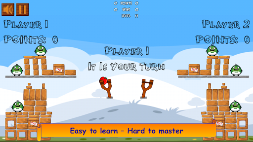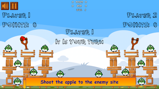 You use a slingshot to shoot with apples. Be first to destroy the whole enemy base, but be aware, the other side shoots back. This game has a balanced mix of puzzle, strategy, patience and action.