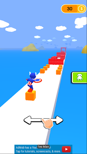 Try to pass over the blocks! with 6 different super hero character! pass all the obstacles so you can reach the finish and level up