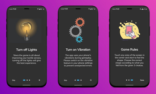 Feel the hidden invisible object on the screen with your touch. Touching the object will return a haptic feedback (vibration). Sense and trace these vibrations to understand the hidden shape.