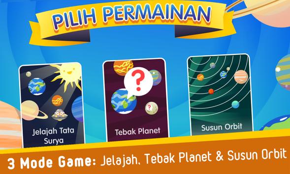 Tebak Planet : Setelah menyelesaikan penjelajahan, saatnya mengasah daya ingat anak mengenali wujud planet beserta namanya. Anak akan disuguhi permainan untuk mencocokkan nama planet dengan gambar yang tersedia