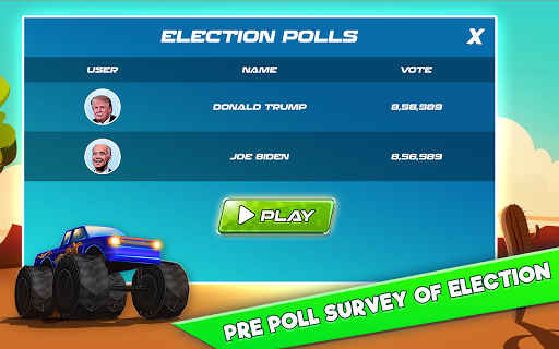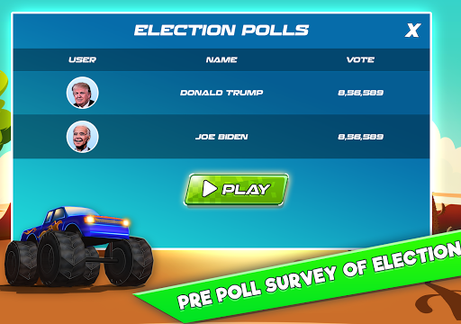 Attraction - Join the pre-poll survey of US ELECTION and vote for the candidates. Select your president – Trump or Biden? Who is your choice? It’s the battle of the Presidents to be – Trump Vs Biden! And you get to choose the winner. Be a part of their journey, help your president reach their final destination- The White House! Select your president and compete with opponent candidates, race with them and defeat your rivals. Democracy had never been so fun!
