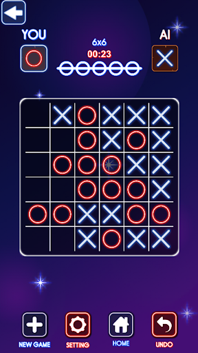 We have a smartest AI which will not allow to win this 5x5 tic tac game easily and in 2 player tic tac toe mode you can play with your friends. You will feel the glow effect and cool animation in this free tic tac toe game. Tic Tac Toe is simple puzzle game, tic tak toe puzzle also known as Crosses game or Xs and Os. Game, The tic tak toe game can play offline with computer or you can play with your friends in 2 player mode on same device. Tic tac Toe provides lots of customization options theme color, AI difficulty modes and board sizes and more.