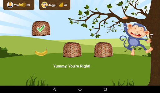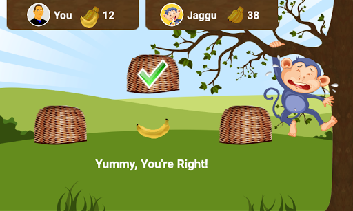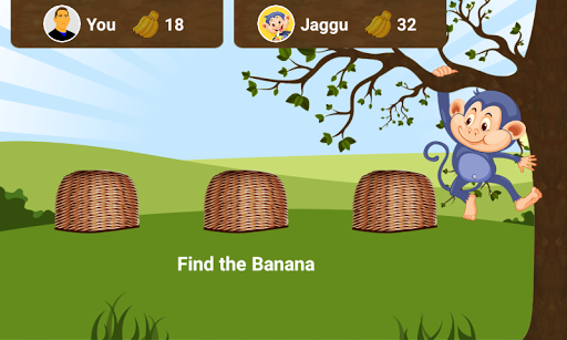 Jaggu has 50 bananas and you will have to get 50 bananas from him to win this game. For every right answer he will giveaway a banana to you & your banana count will increase. You have to find the banana hidden inside the basket and make him to giveaway all the Banana's he has.
